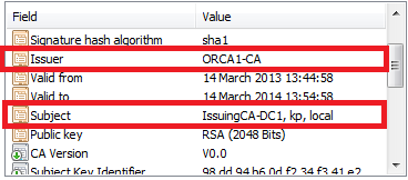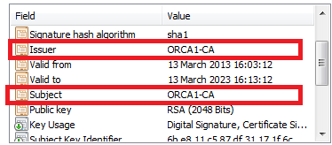 Subordinate CA certificate issued by ORCA1-CA