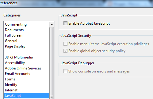 User level>AR>Preferences>Security>Enable Acrobat JavaScript (we obviously want to set this to DISABLED)