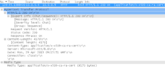 If there is an RA, as it is the case in this lab, the RA certificates are sent back together with the CA certificates. The content type is application/x-x509-ca-ra-cert.